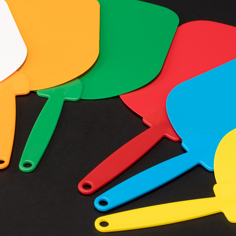 Abanico de PP full color. Cuerpo 0.6mm de espesor. Mango 3.4mm de espesor.