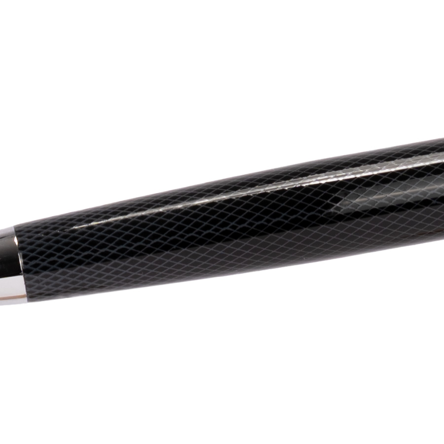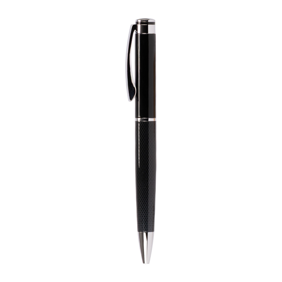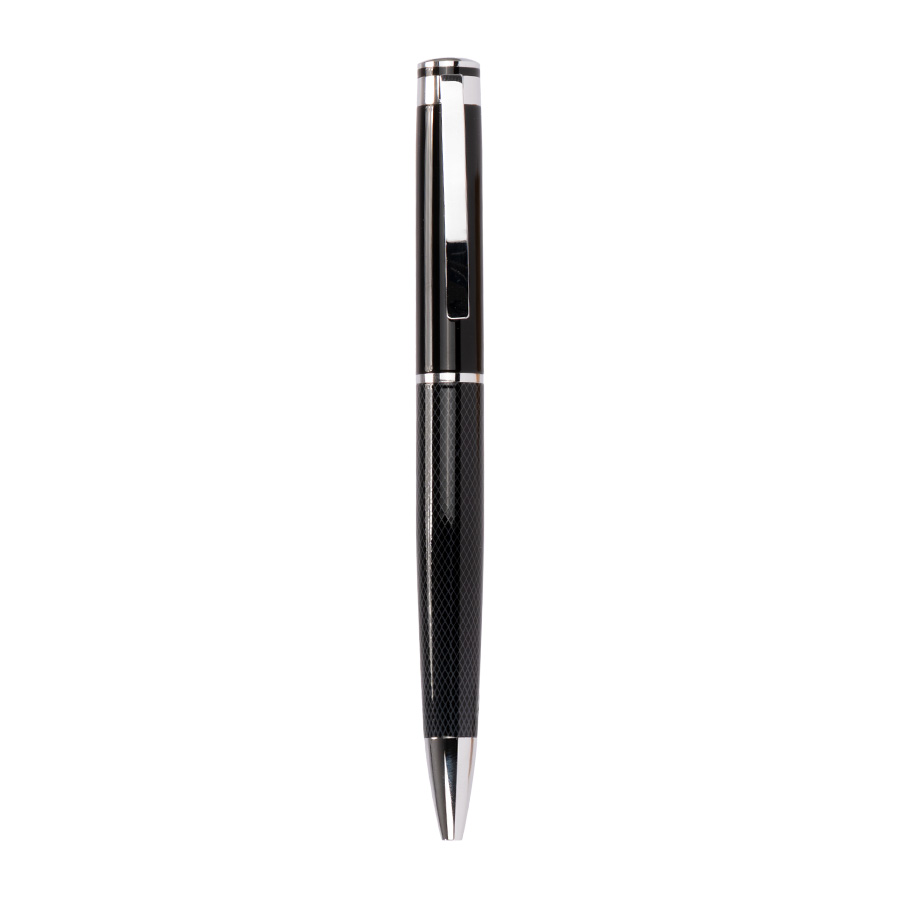 Bolígrafo ejecutivo «DARK», escritura negra. Presentación en elegante estuche de PU negro con costura, interior cuna aterciopelada blanca. Sobre funda de papel color negro.