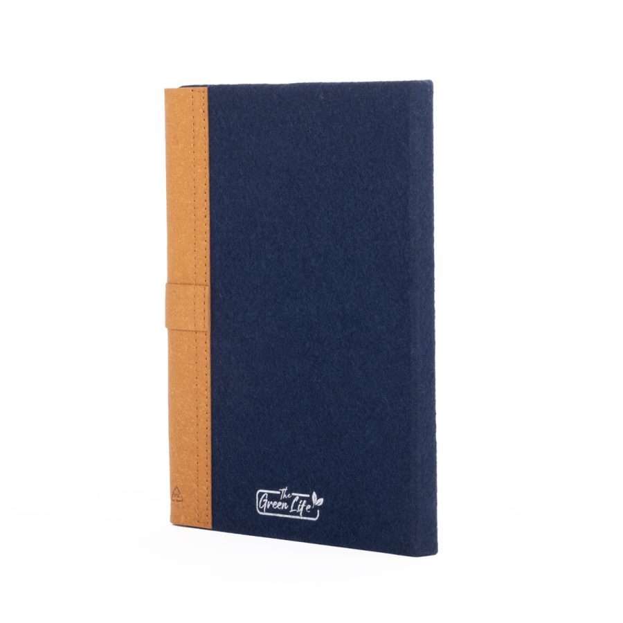 BOSTON es un cuaderno A5 de tapa dura que combina sobriedad y compromiso ambiental en una sola pieza. Su cubierta de fieltro negro reciclado y cierre de PU natural le dan un carácter distintivo, elegante y funcional, ideal para entornos corporativos y creativos por igual. Con 80 hojas lineadas en papel marfil de 70 g, cinta marcadora negra y acabados de alta calidad, BOSTON está pensado para acompañar a quienes valoran el orden, la estética y la sostenibilidad. Fabricado con materiales reciclados, representa una elección inteligente y consciente para marcas que desean transmitir profesionalismo con propósito.
