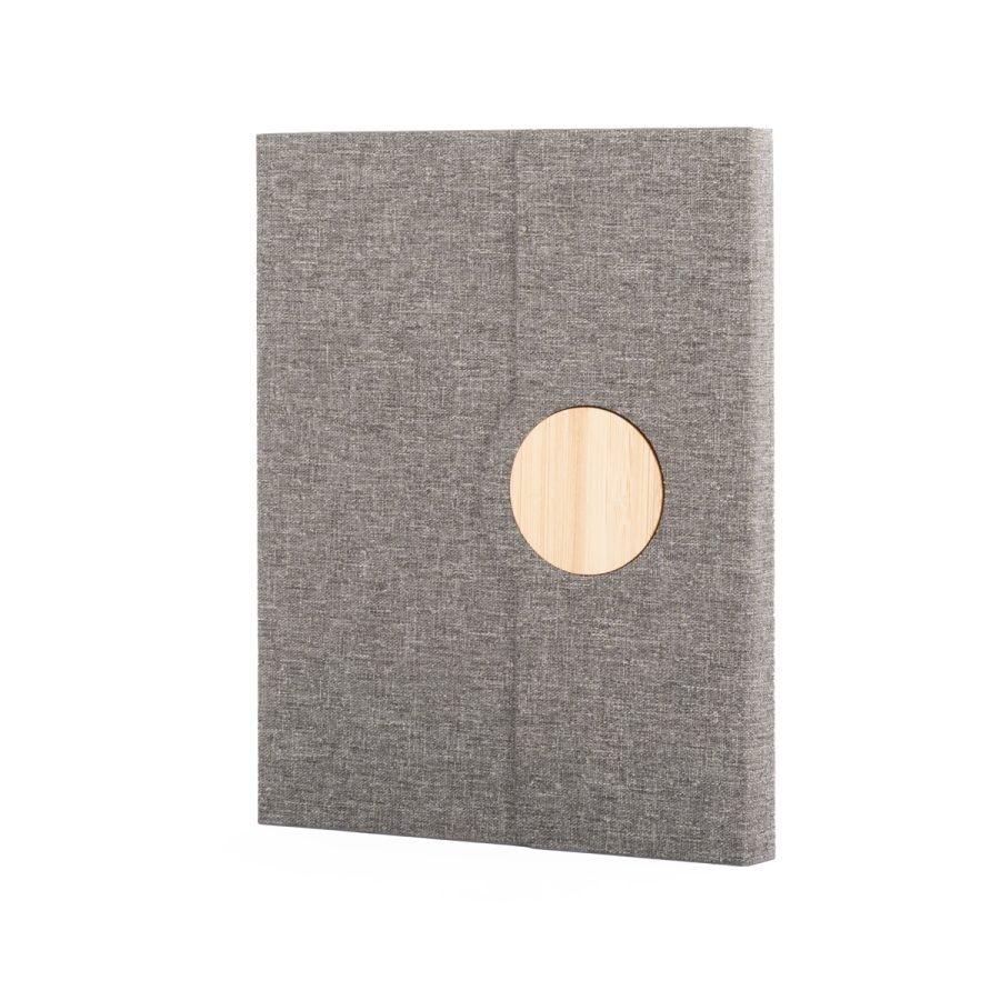 TAHITI es un cuaderno A5 que armoniza la elegancia moderna con un firme compromiso ambiental. Su cubierta de tela Oxford fabricada con botellas plásticas recicladas (RPET) y el delicado detalle de bambú natural en el cierre magnético reflejan una fusión única entre tecnología sostenible y materiales nobles. Sus 80 hojas punteadas en papel marfil de 70 g brindan el espacio ideal para esquemas, ideas y notas organizadas, mientras su cinta marcadora y soporte elástico para bolígrafo añaden funcionalidad al diseño. Disponible en gris o azul, TAHITI representa una nueva forma de regalar utilidad con propósito. El RPET, además de reducir residuos, cuenta con certificación GRS, que garantiza procesos de reciclaje social y ambientalmente responsables. Ideal para marcas que desean escribir una historia alineada con sus valores.