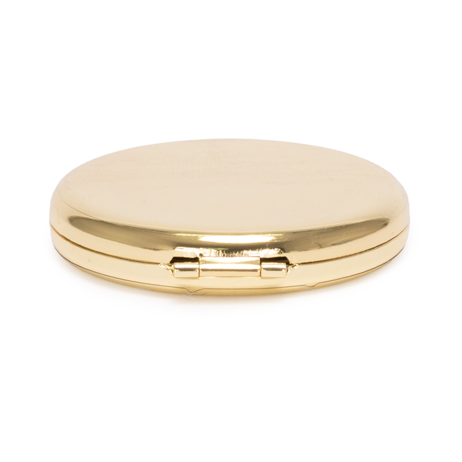 Espejo metálico de Acero inoxidable redondo doble. Interior con 2 espejos: uno normal, el otro con aumento. Presentación en bolsa espuma frozen + caja de cartón laminado negro. IMPORTANTE: este espejo viene con sellos plásticos en ambas caras exteriores, para protegerlo de manchas y rayaduras. Antes de imprimir o grabar logo, preocúpese de retirar los sellos plásticos.
