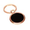 Llavero metálico ovalado de zinc alloy encobrizado, con placa interior de aluminio negro. Presentación en elegante estuche laminado negro mate, con cuna aterciopelada negra.