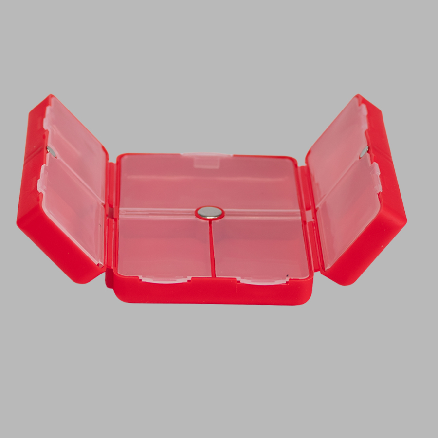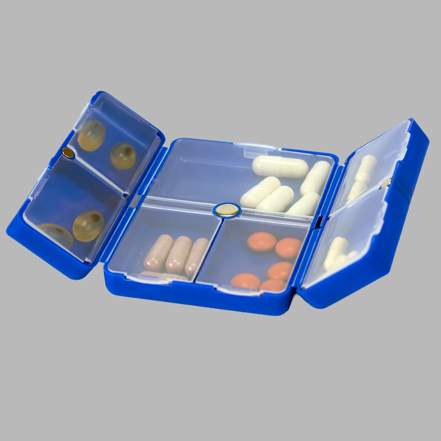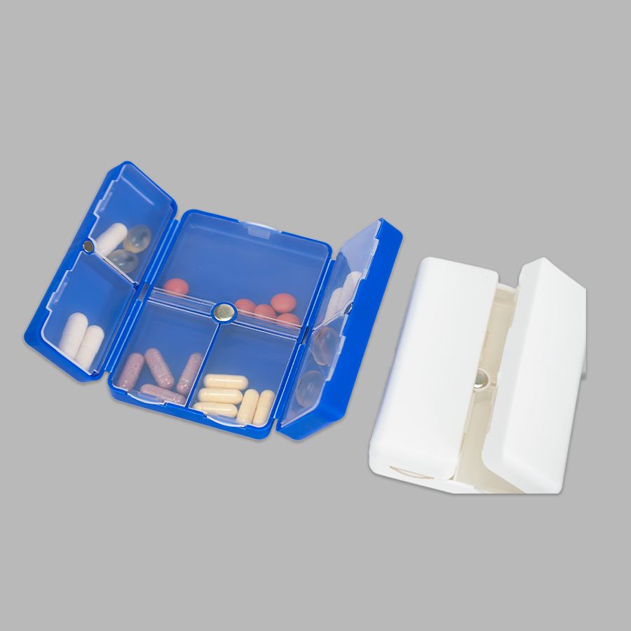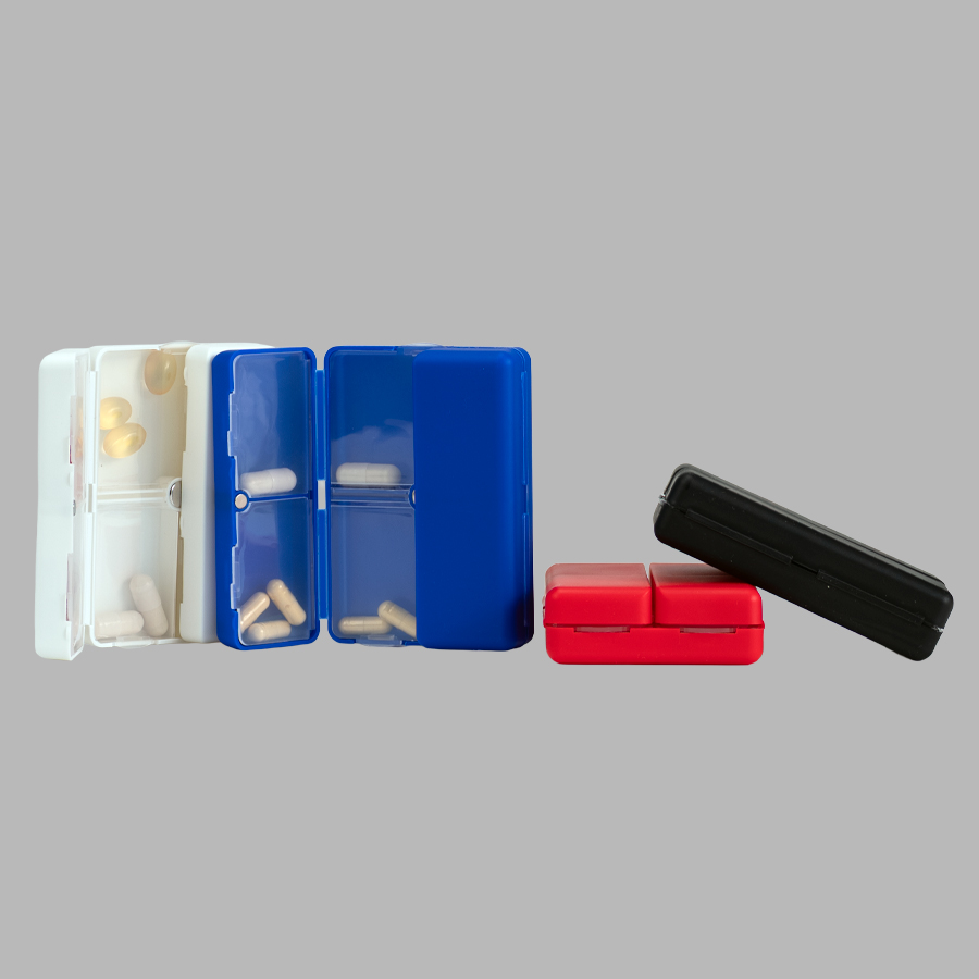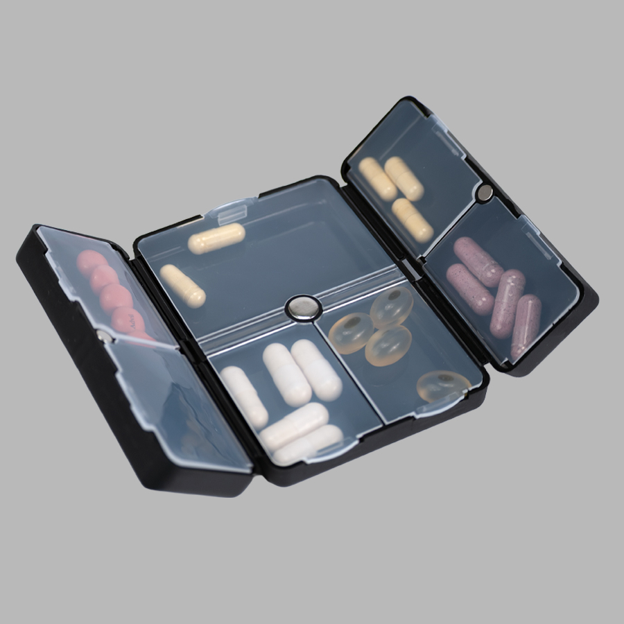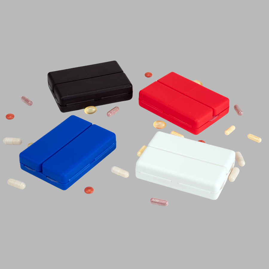Pastillero semanal «CARE» de Polipropileno (PP). Cuenta con 7 compartimentos interiores de PVC translúcido y apertura doble tipo «libro», con cierre interior imantado. Presentación el bolsa OPP + caja de cartulina blanca.