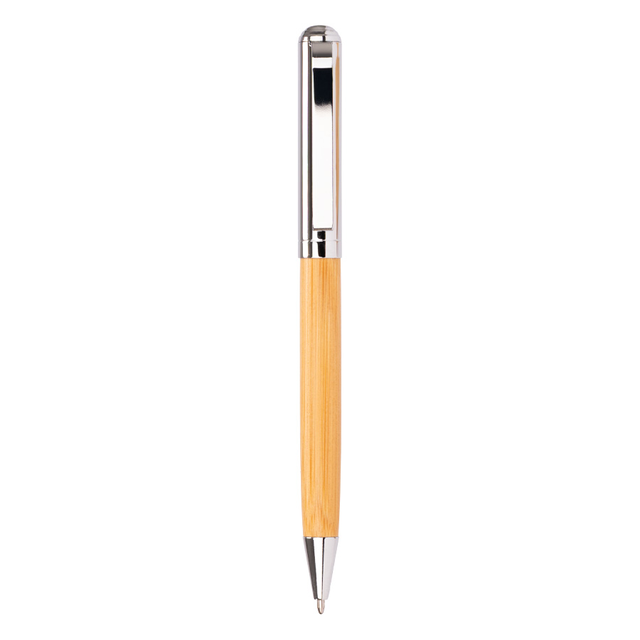 Set de Regalo «UMPIRE», incluye llavero metálico CON APLICACIÓN DE bAMBOO + Bolígrafo metálico plateado con grip de Bamboo, escritura azul. Presentación en elegante caja de carton color natural con tapa, interior cuna de EVA aterciopelada negra. Sobre funda de papel color natural.