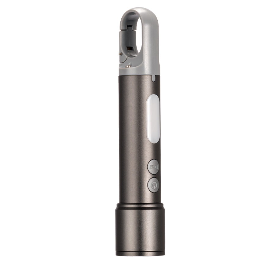Linterna táctica recargable de Aluminio con 15 diferentes funciones. Luz LED principal con 5 funciones o intensidades: 100%-50%-25%-estroboscópico-SOS. Lámpara lateral con 4 funciones: 100%-50%-luz roja frecuente y estroboscópica. Control de apertura de foco. Incluye cápsula blanca para convertir la linterna en lámpara, incluye 3 filtros de color: azul-verde-rojo. Incluye Mosquetón para colgar. Incluye cable de carga USB-Tipo C y ranura Tipo C para cargar la batería interna. Características técnicas: 1) Batería de litio 18650 2) Voltaje: 3.7 V 3) Luminosidad: 1000 Lumen 4) Carga: 2000 mAh 5) Potencia: 20W 6) Alcance de Proyección: 150m 7) Tiempo de Carga: 5 horas aprox. Presentación en caja de regalo de cartón kraft.